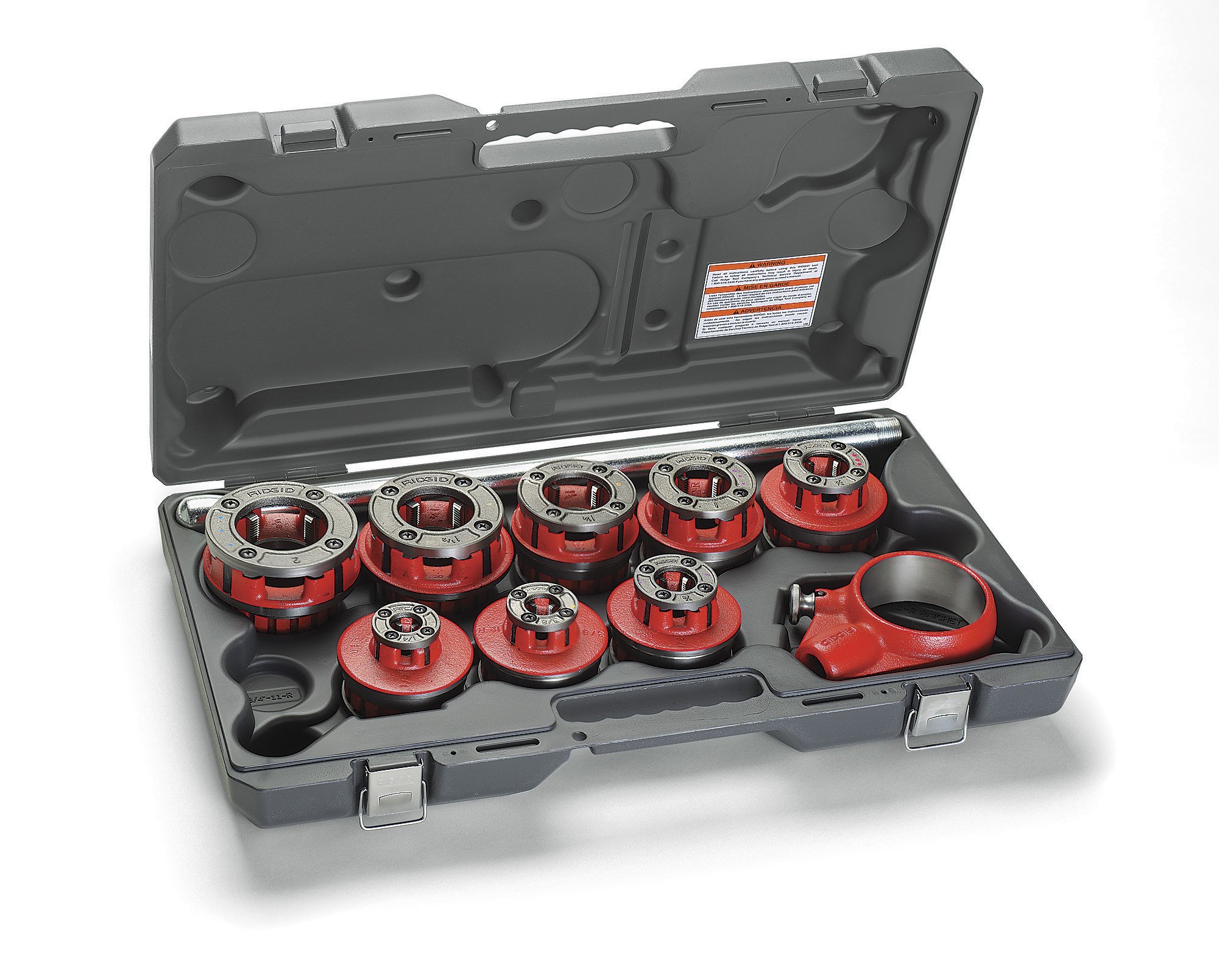 - Die heads snap in from both sides and lock in place for faster size changes