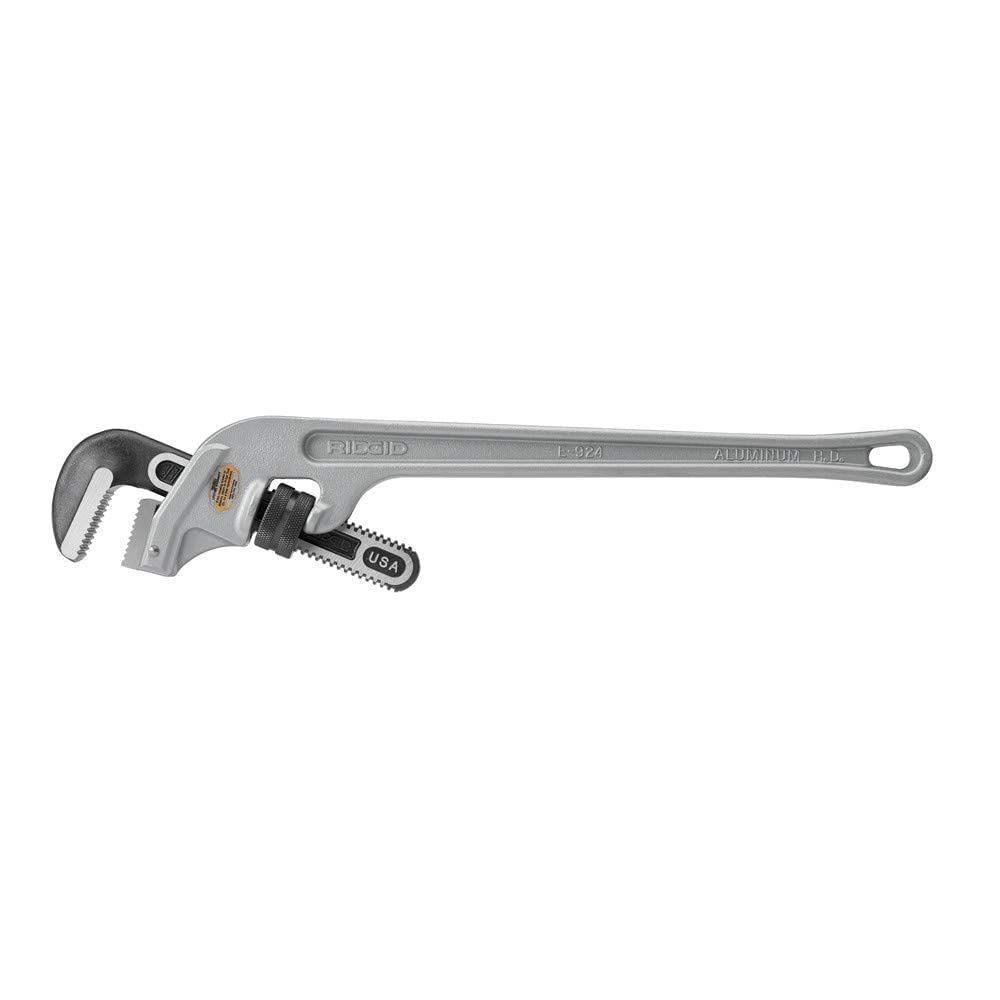 RIDGID 90127 E-924 24" Aluminum End Pipe Wrench with 3" Pipe Capacity, 40% Lighter Aluminum End Plumbing Wrench with Angled Handle—